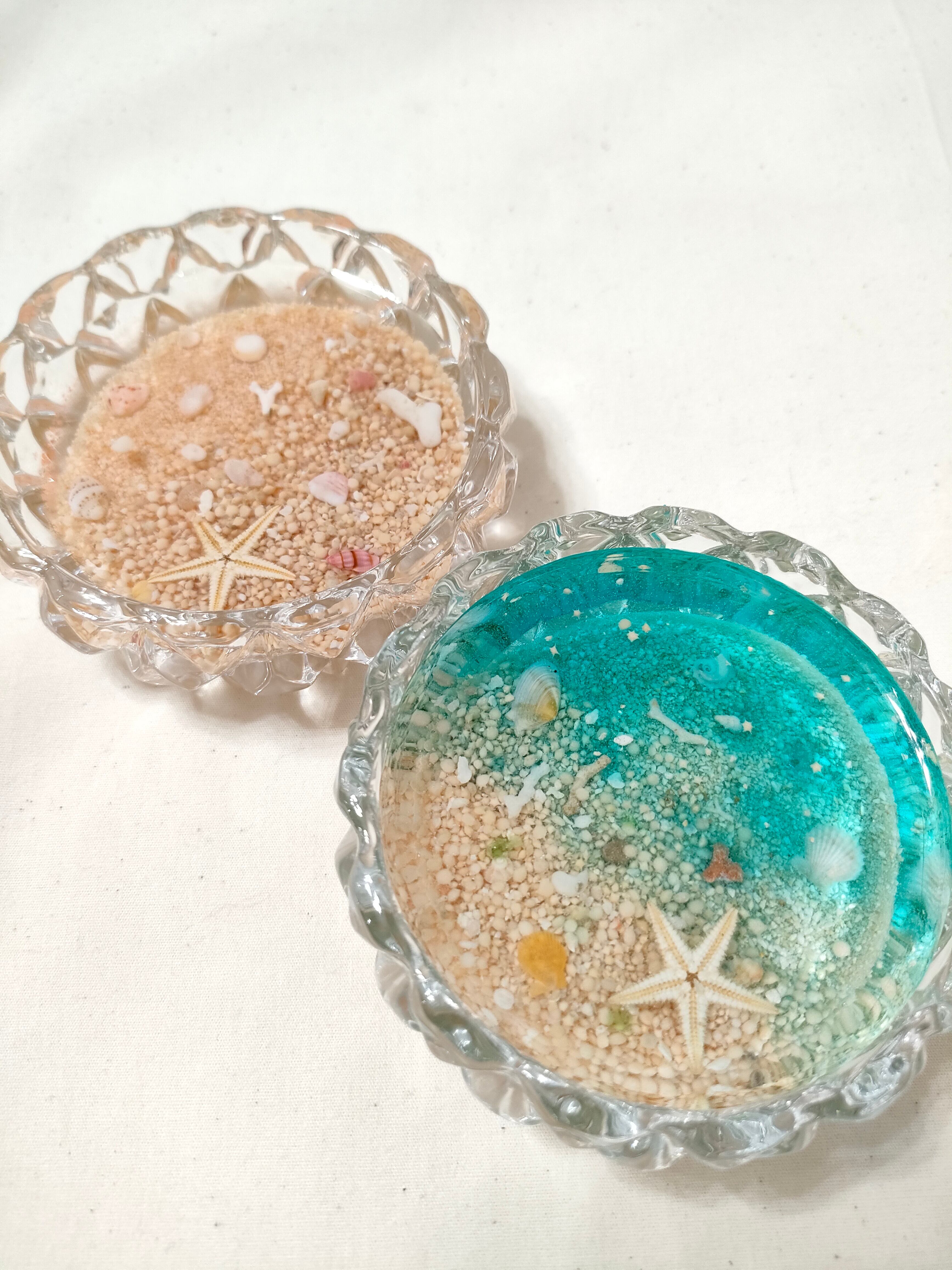 壮大な海をギュッと小物入れの中に詰め込んで作成しました。